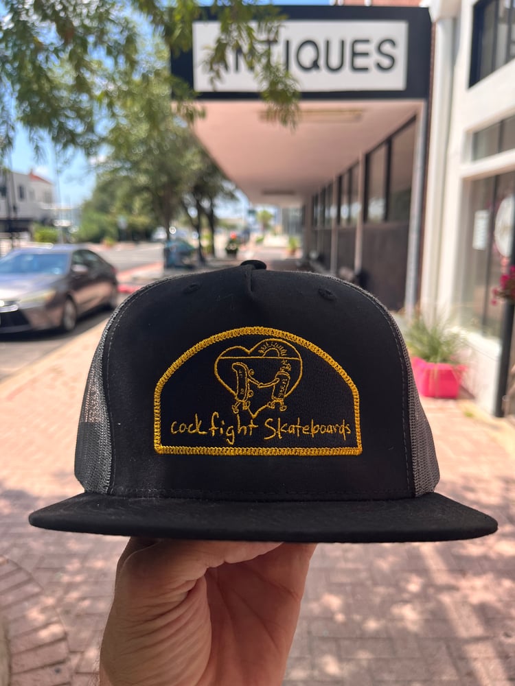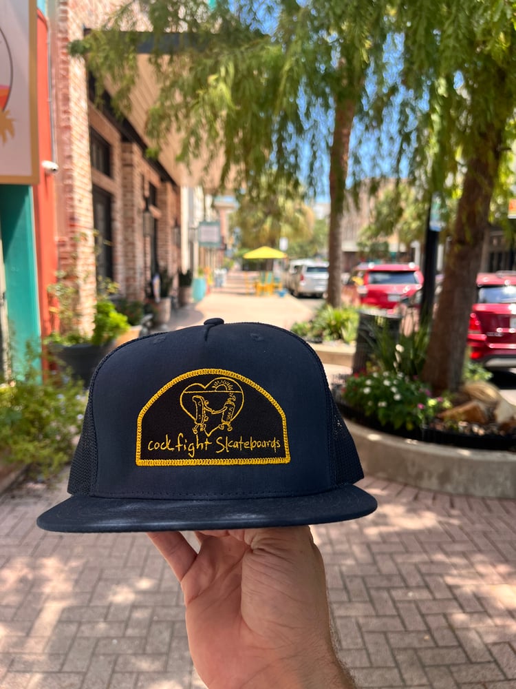 Rope Hats. Gold on Navy Blue trucker with blue mesh